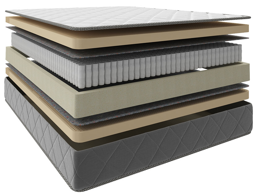 Натуральный латекс 60 мм / Войлок / Система усиления периметра матраса - короб ППУ / Пружинный блок Multipocket S1000 (510 пр./кв.м) |