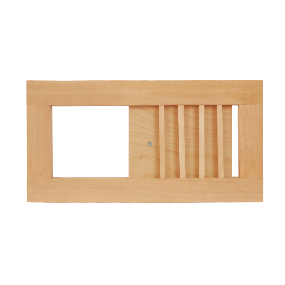 Вентиляционная решетка для бани и сауны. Предназначена для притока воздуха с возможностью закрытия вентиляционного отверстия. Изготовлена из натурального дерева – ольхи.