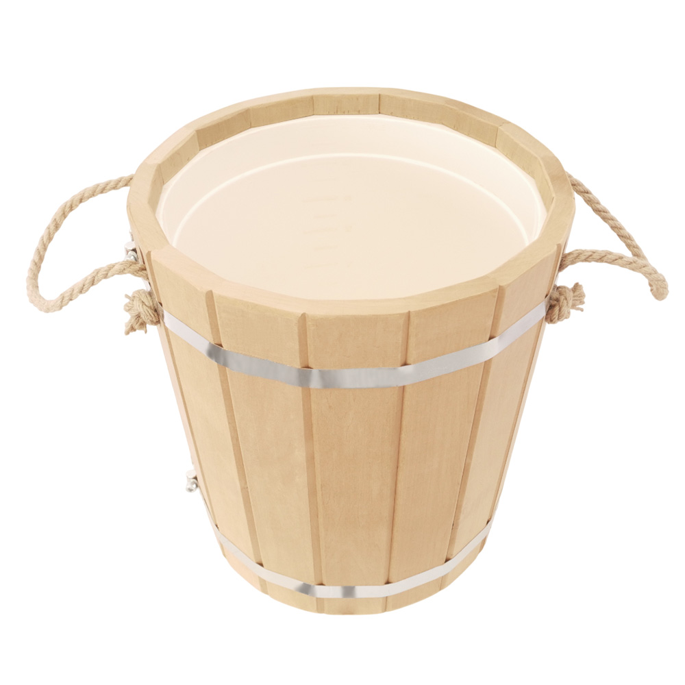 Отлично подходит для хранения и переноски воды, настоя трав, запарки веников. Вставка из пластика обеспечит удобный уход. Ведро оснащено удобной ручкой