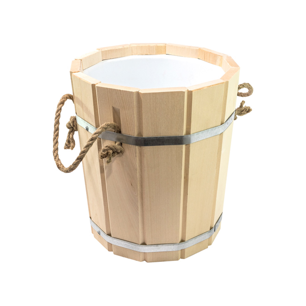 Отлично подходит для хранения и переноски воды, настоя трав, запарки веников. Вставка из пластика обеспечит удобный уход. Ведро оснащено удобной ручкой из толстой бечевы