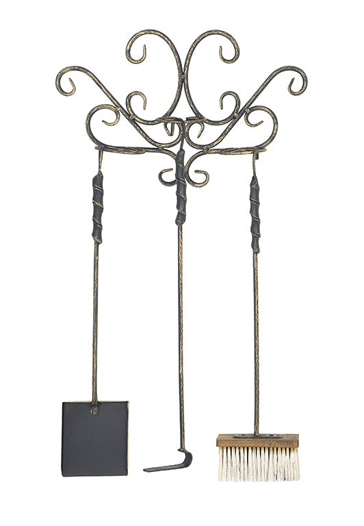 Набор предназначен для ухода за очагом, как во время горения, так и для чистки топки после него. Набор состоит и богра, щетки и совка. Все элементы кованные.