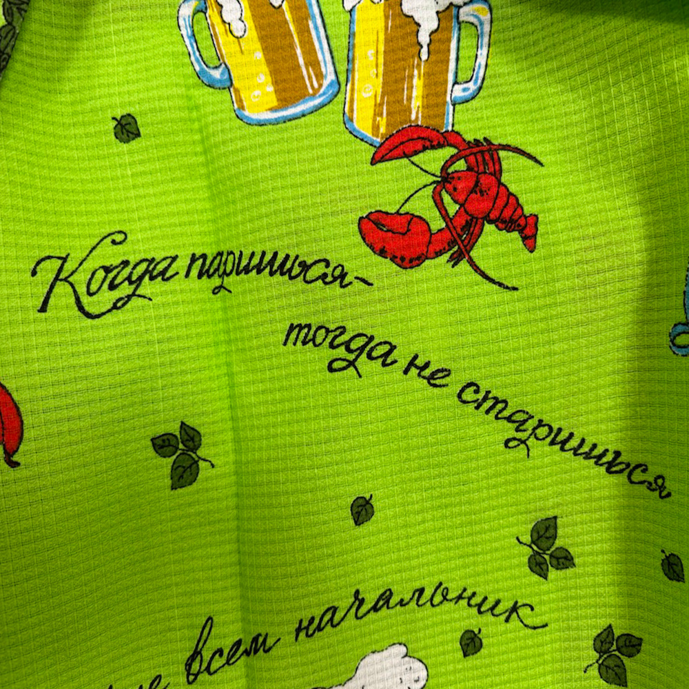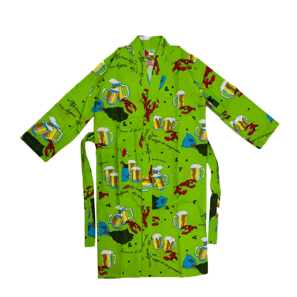 Легкий и удобный халат из вафельной ткани предназначен для отдыха после посещения парной. Свободный покрой с двумя карманами и поясом.