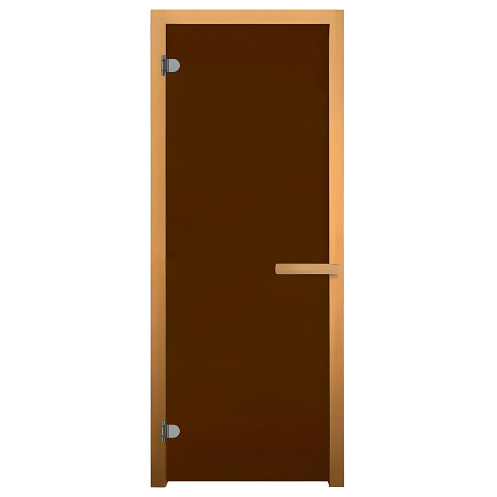 Стеклянная дверь для сауны изготовлена из высокопрочного закалённого стекла, что делает дверь максимально безопасной. Дверная коробка изготовлена из высококлассной срощенной породы древесины.