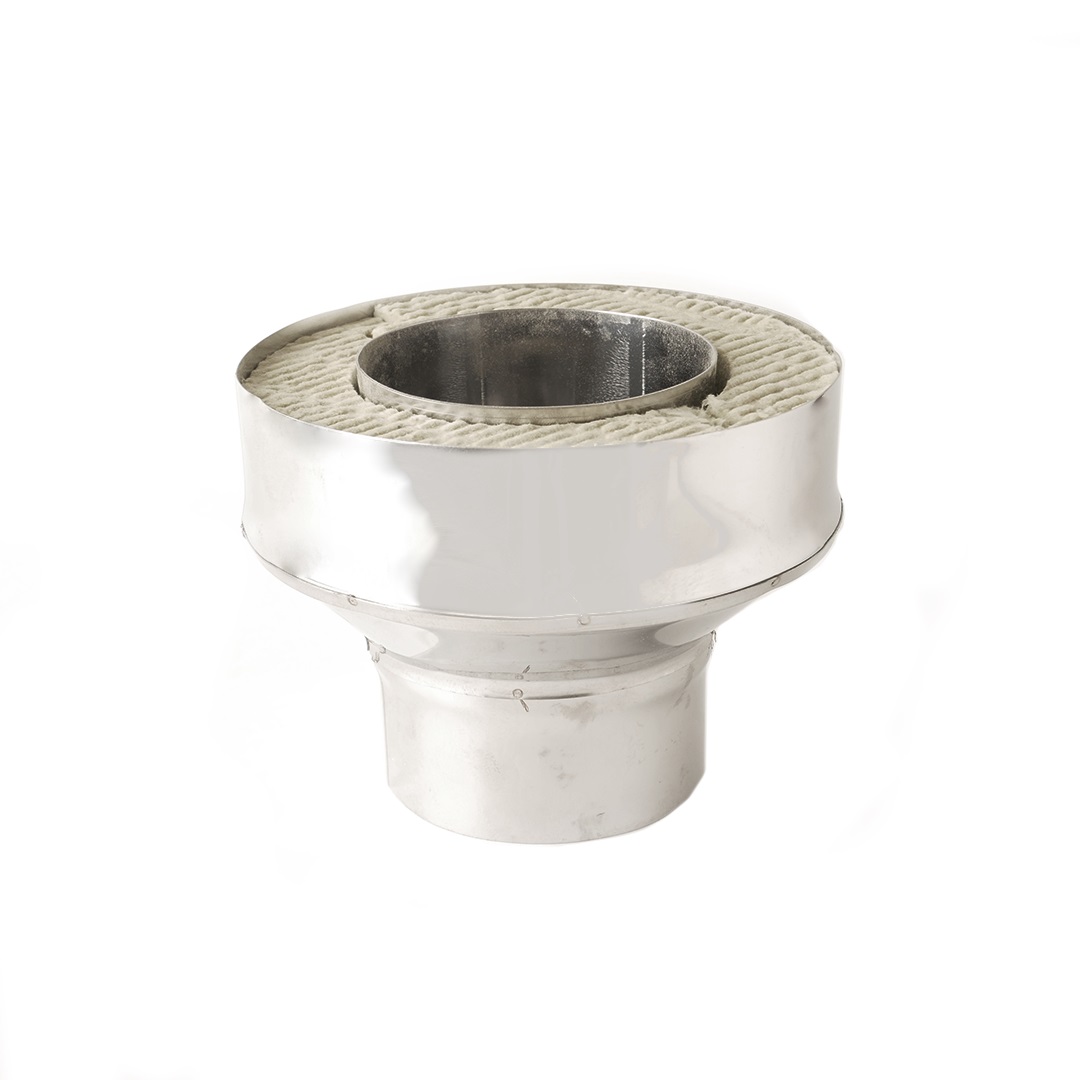 Переходы устанавливается при переходе с неутепленной системы на утепленную (с одноконтурного дымохода на двухконтурный). Элемент дымохода "Переход на сэндвич" изготовлен из нержавеющей стали 0,8 мм.