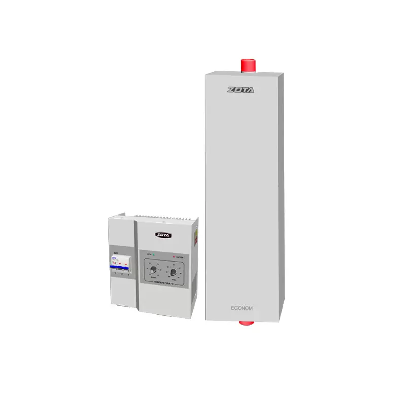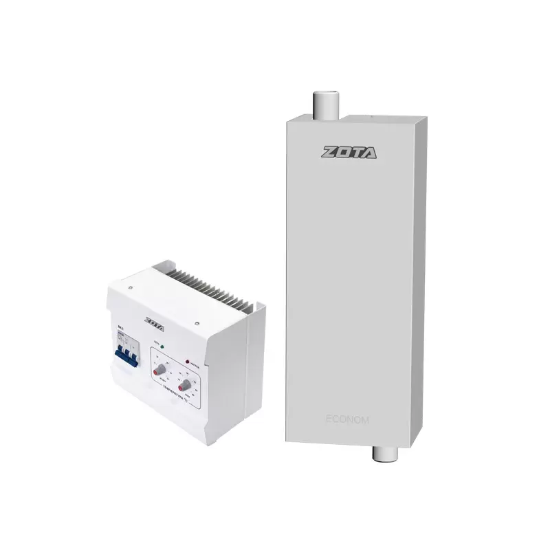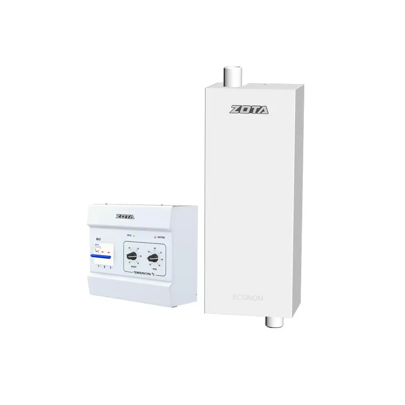 Электрокотел ZOTA "Econom" предназначен для отопления жилых и промышленных объектов площадью до 75 м². Пульты управления с автоматическим регулированием температуры воздуха в помещении от +10 до +35°С и теплоносителя на выходе из котла от +40 до +90°С обеспечивают оптимальную работу системы в заданных режимах.
