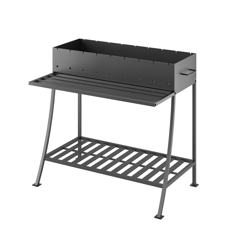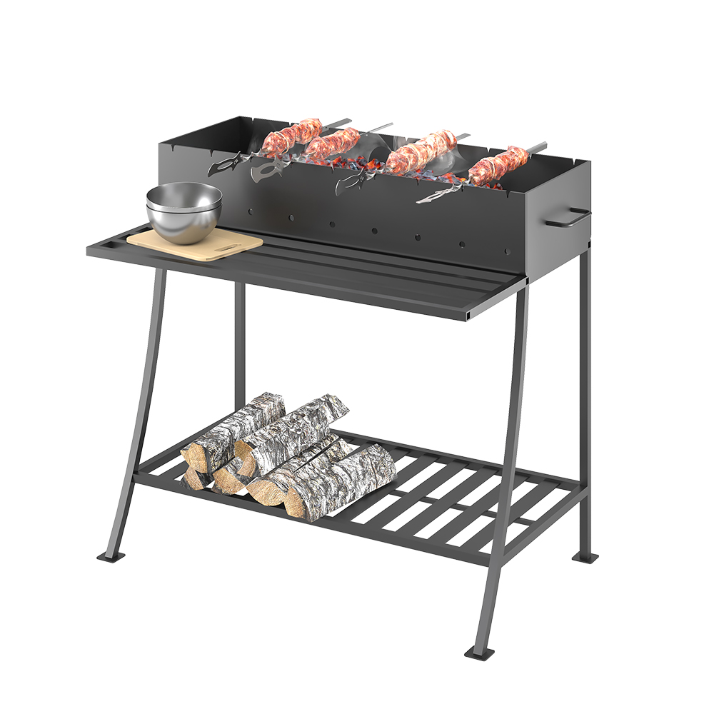В основании мангала предусмотрена решетка, на которой можно хранить дрова или мешок углей.