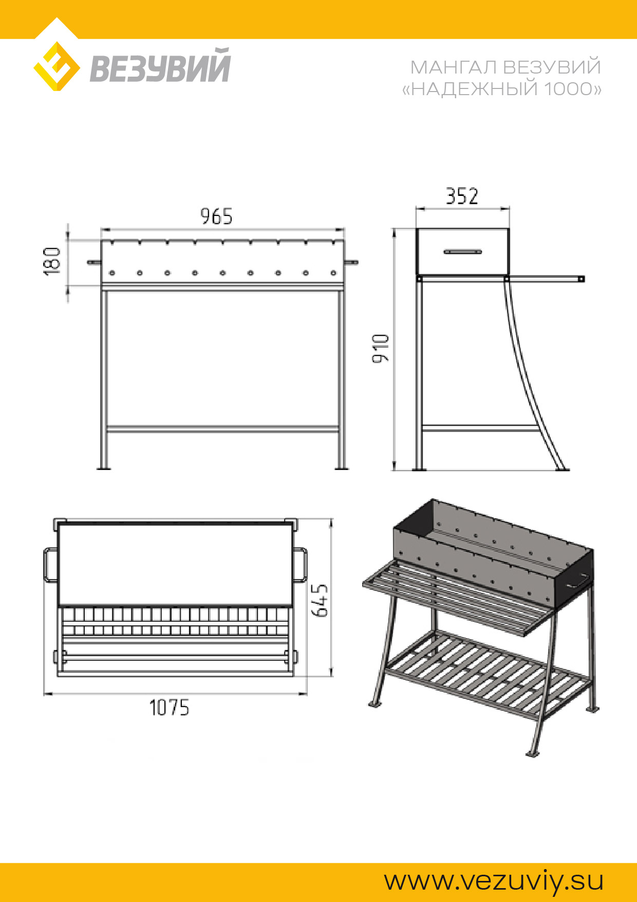 Мангал «Надежный 1000» спереди оснащен удобным столиком, поэтому все необходимое для приготовления пищи, будет всегда «под рукой».