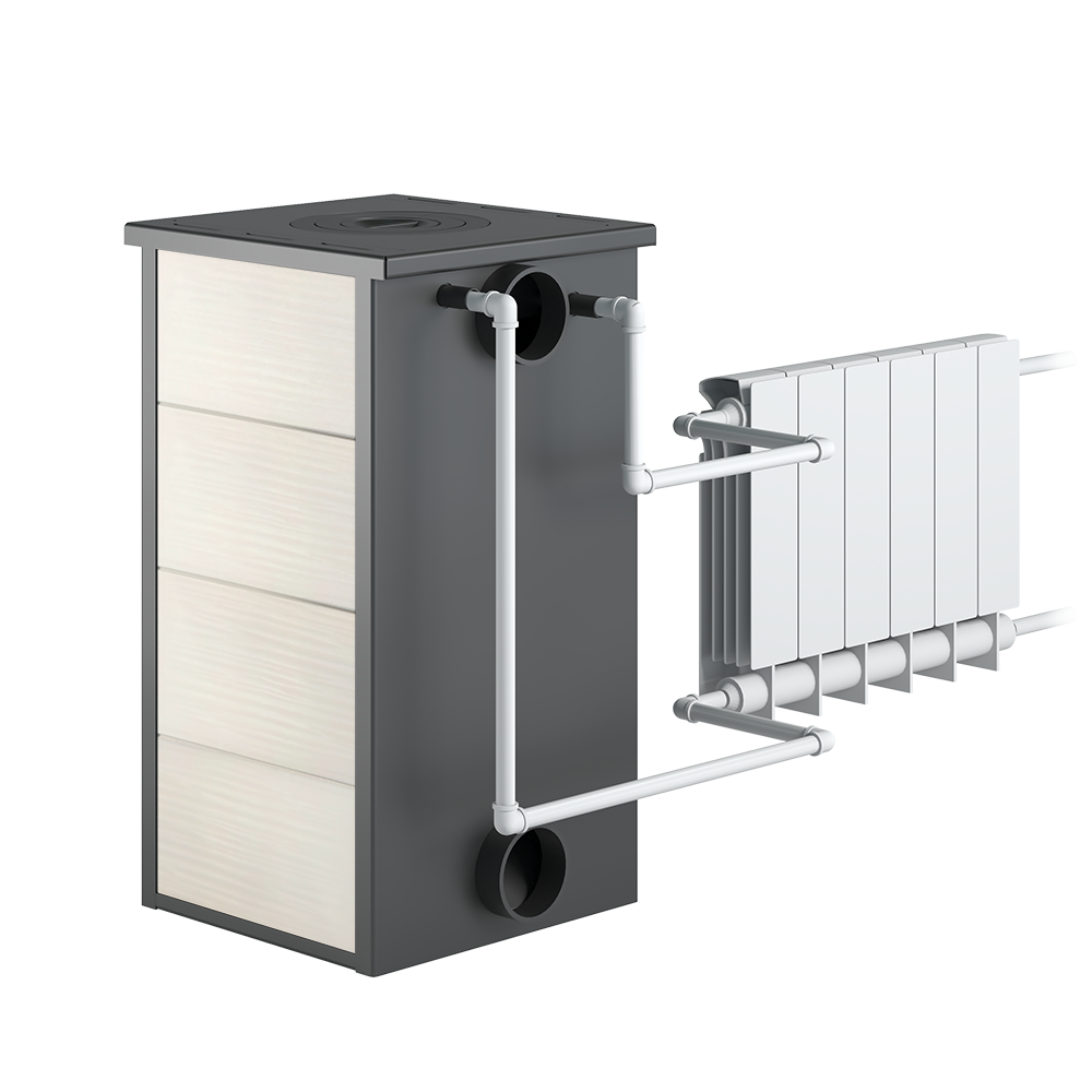 - Установка патрубка дымохода сзади или сверху у моделей без чугунной плиты.