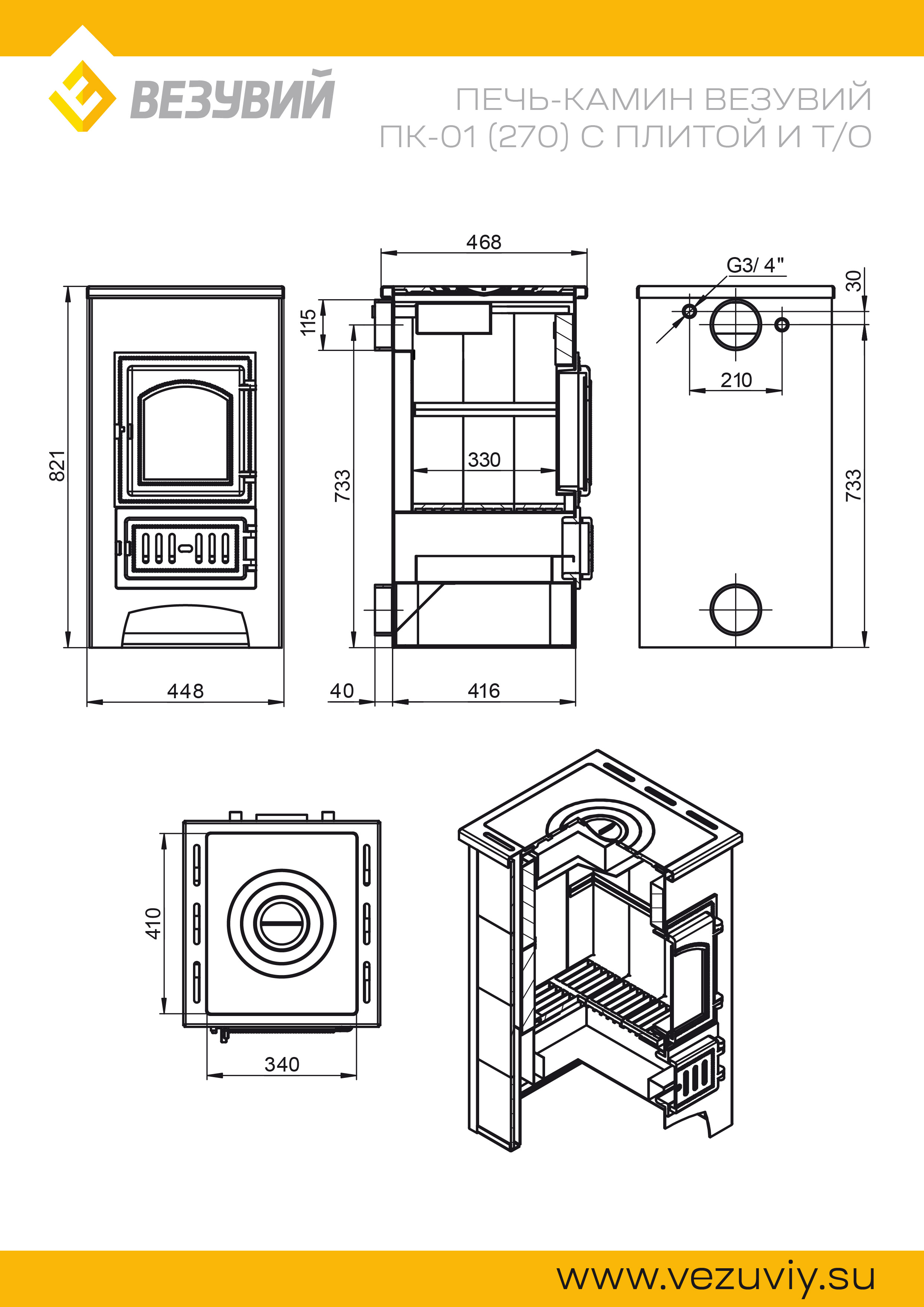 Печь-Камин ВЕЗУВИЙ ПК-01 (270) изготовлена из высококачественной конструкционной стали , предназначена для отопления жилых и подсобных помещений до 150 м³. Конвекционно–вентилируемая облицовка, изготовленная из экологически чистой керамической плитки, обладающей большой теплоёмкостью, что позволяет в короткие сроки нагреваться и максимально долго удерживать стабильную температуру. Плитка хорошо поглощает влагу , а при пересушенном воздухе напротив ее отдает , что позволяет поддерживать комфортную атмосферу в помещении. Печь оснащена чугунной дверцей с жаростойким стеклом и регулировкой режимов горения. Чугунная колосниковая решетка при нагревании не деформируется и обеспечивает отличный приток воздуха в топочную камеру. Чугунная варочная плита позволит без труда приготовить пищу. Встроенный теплообменник позволит без проблем подключить печь к отопительной системе помещения.