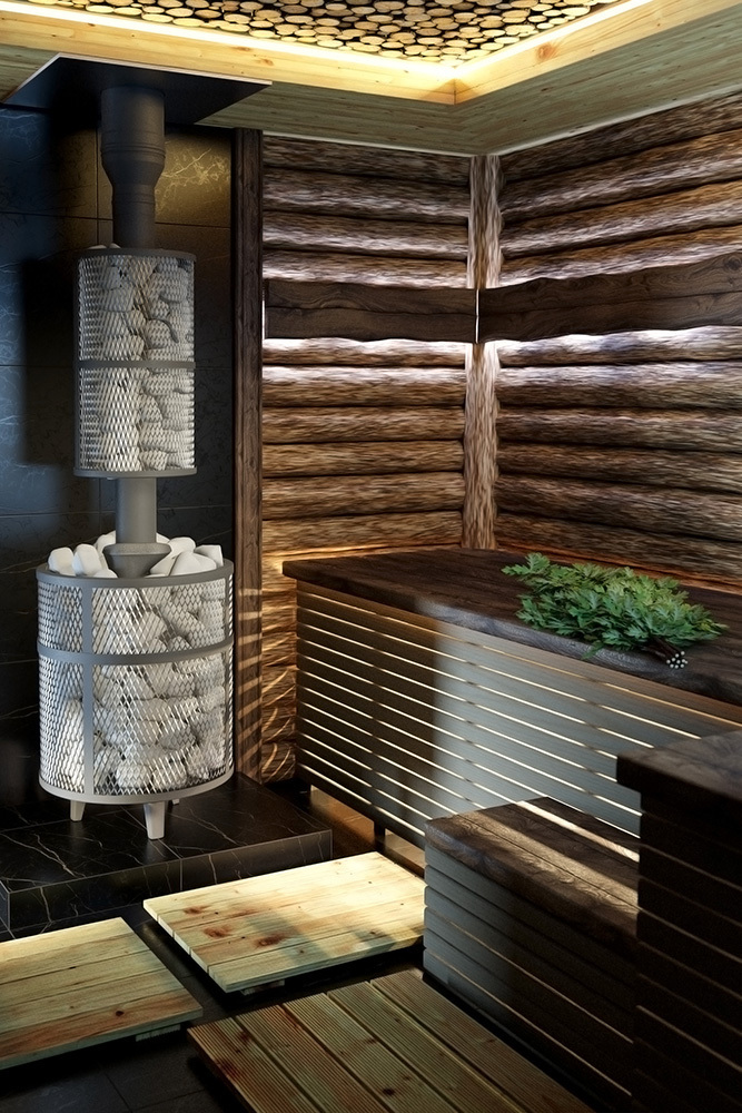 Сетка-каменка защищает от излучения, уменьшая поверхность открытой трубы, снимает тепло с ее стенок и направляет его на прогрев камней.
